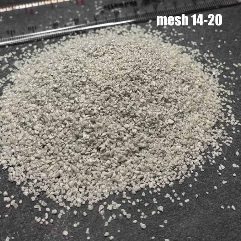 Pasir Silika Mesh 14–20 merupakan pasir silika dengan ukuran butiran sangat halus (sekitar 0,8–1,2 mm). Jenis ini banyak digunakan untuk penyaringan tahap akhir karena mampu menangkap partikel sangat kecil, sehingga hasil filtrasi lebih maksimal.